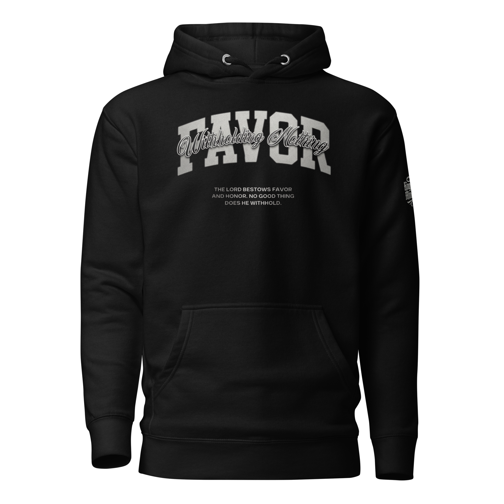 Inspired by the promise that “The Lord bestows favor and honor. No good thing does He withhold,” this hoodie reflects confidence, purpose, and the goodness of God. With its premium construction, soft feel, and polished finish, it is designed to be more than casual wear. It is a statement piece.
