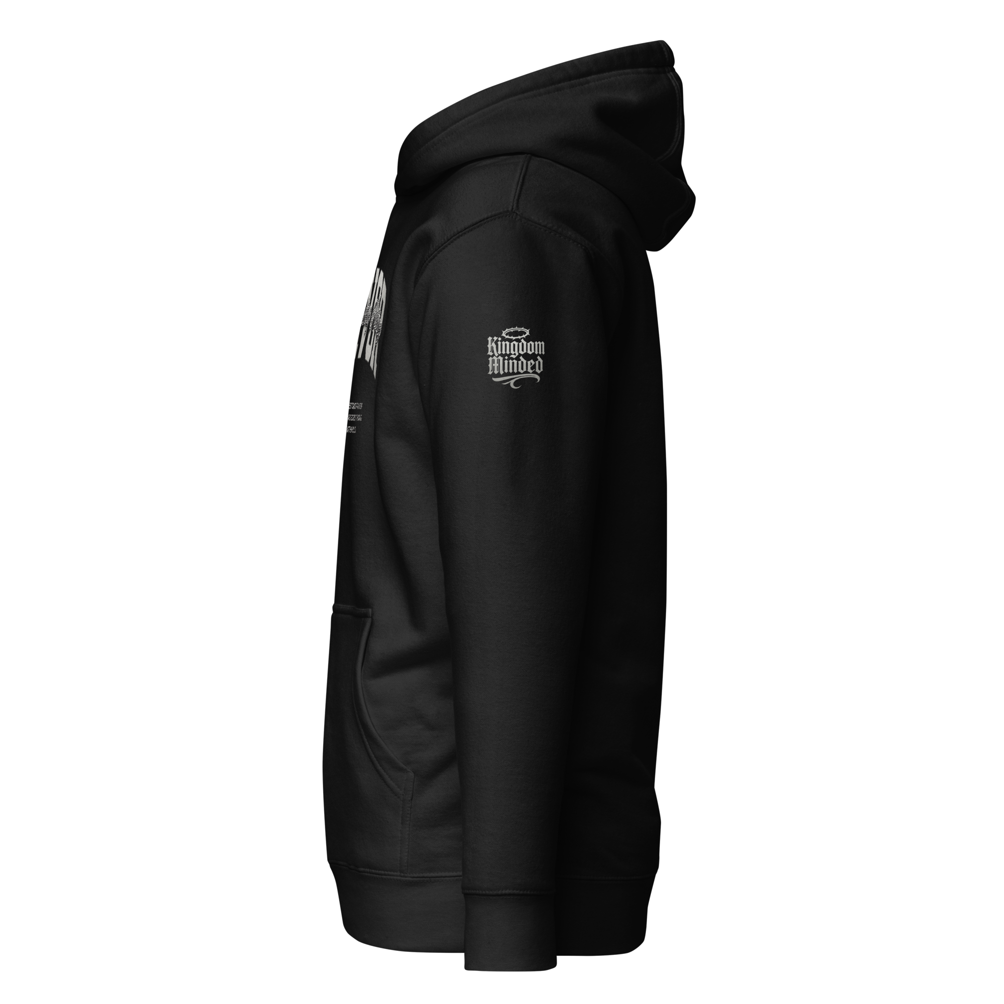 The Favor Hoodie is a high-end Kingdom Minded design crafted for a bold yet refined look. Featuring the signature Favor graphic on the front and the Kingdom Minded logo on the left sleeve, this piece was created to carry a message of faith with elevated style.